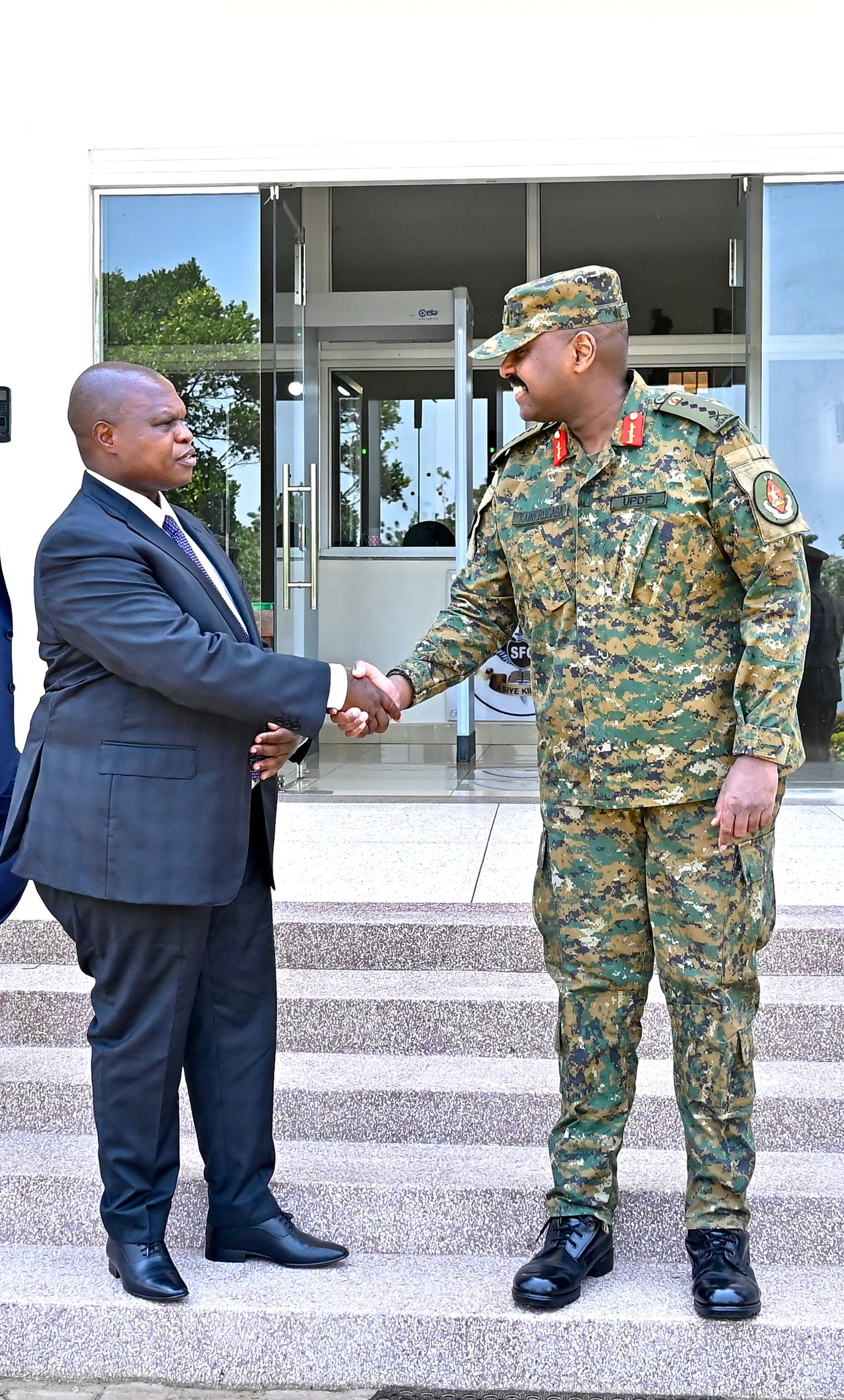 Kenya High Commissioner to Uganda, His Excellency Joash Maangi, paid a courtesy visit to the Chief of Defence Forces, General Muhoozi Kainerugaba, this afternoon.
