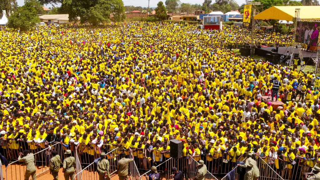 The atmosphere was electric—cheers, chants and NRM flags waving high—as the President stepped onto the podium.