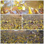 “That is how we have been able to bring peace across the country,” he told the crowd, many of whom had arrived hours earlier to secure space near the stage.